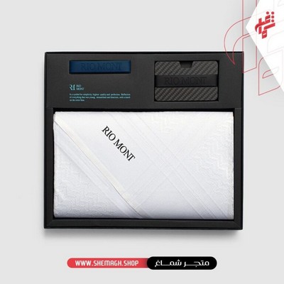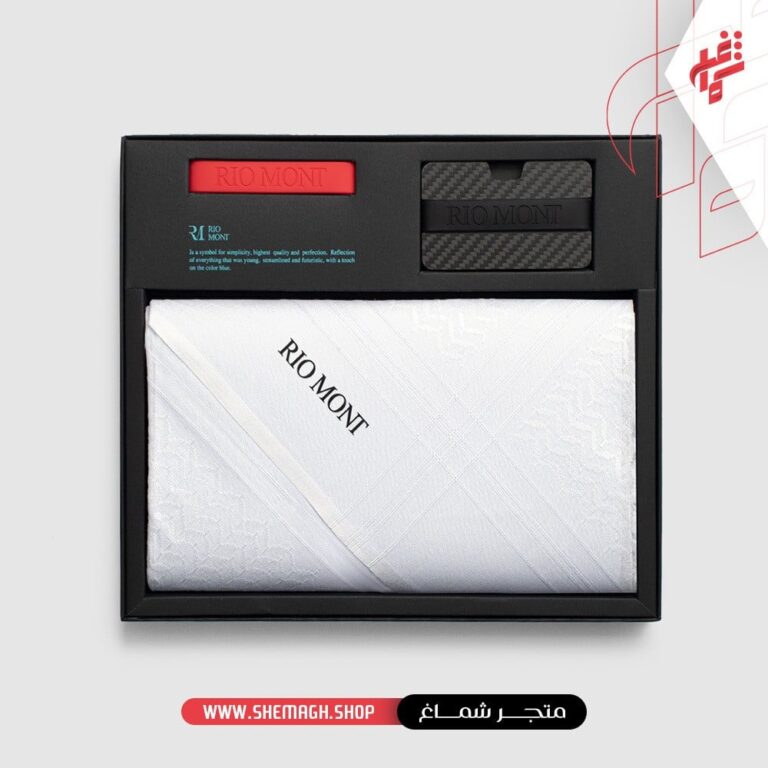 شماغ ريو مون كلاسك أبيض مع محفظة كاربون فايبر بحزام أسود أزرق