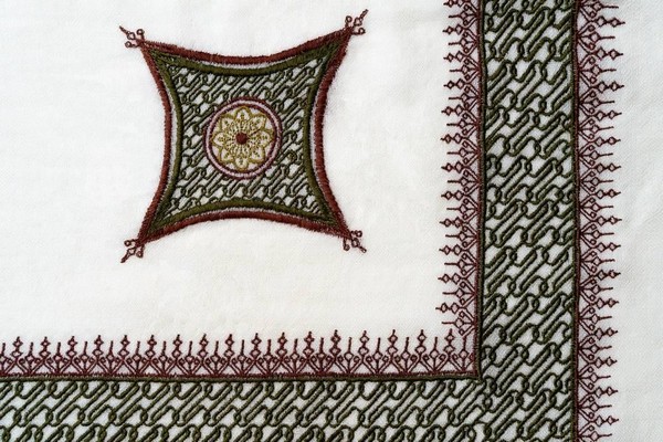✅ يأتي بنقشات يدوية راقية تراثية علي أطراف الشماغ .