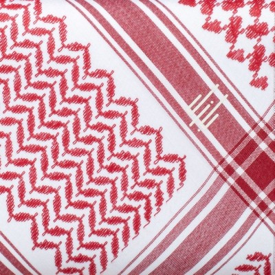• تمت حياكة الشماغ بالكامل من خيوط الأحمر الزاهر مع خيوط بيضاء ناصعة البياض مصنوعة من قطن طبيعي 100% ذو جودة عالية .