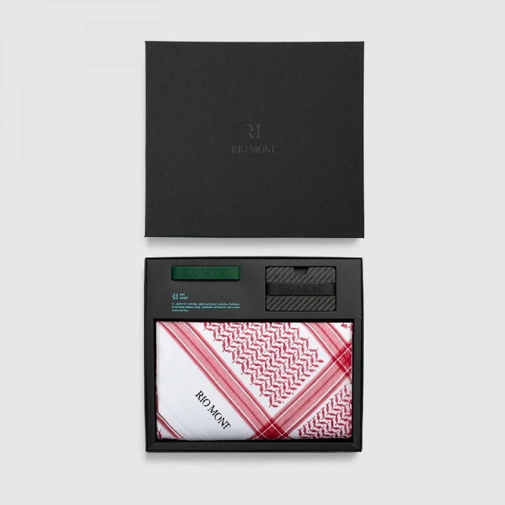 • شماغ ريو مون كلاسك احمر مع محفظة كاربون فايبر بحزام أسود أخضر تهتم بأدق التفاصيل حيث تستخدم لتصميم الشماغ آلات متخصصة لإظهار خيوطنا ذات جودة عالية مع لمسة خاصة لنسيج منتجاتنا.