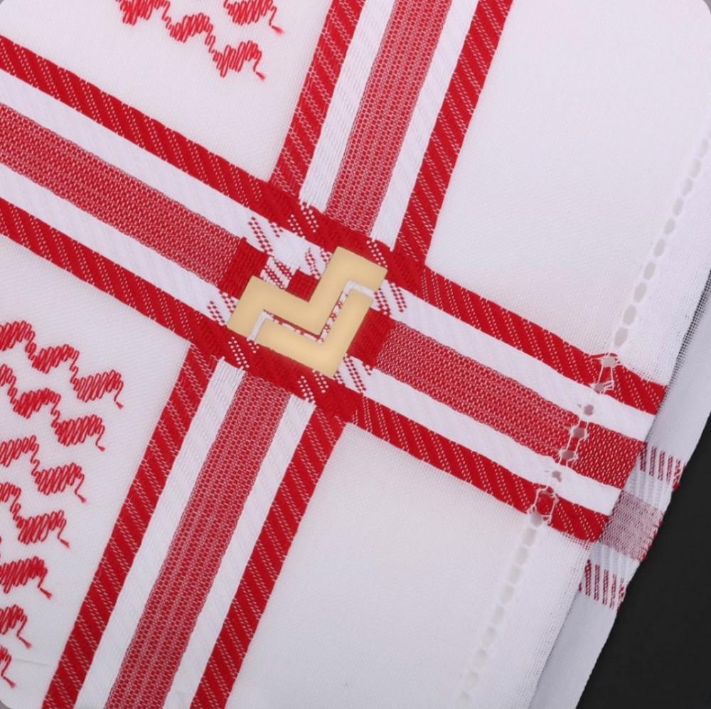✅نقوش حمراء بارزة تتداخل مع الخيوط البيضاء ليعيد إليك روح الماضي والتراث العربي العريق .