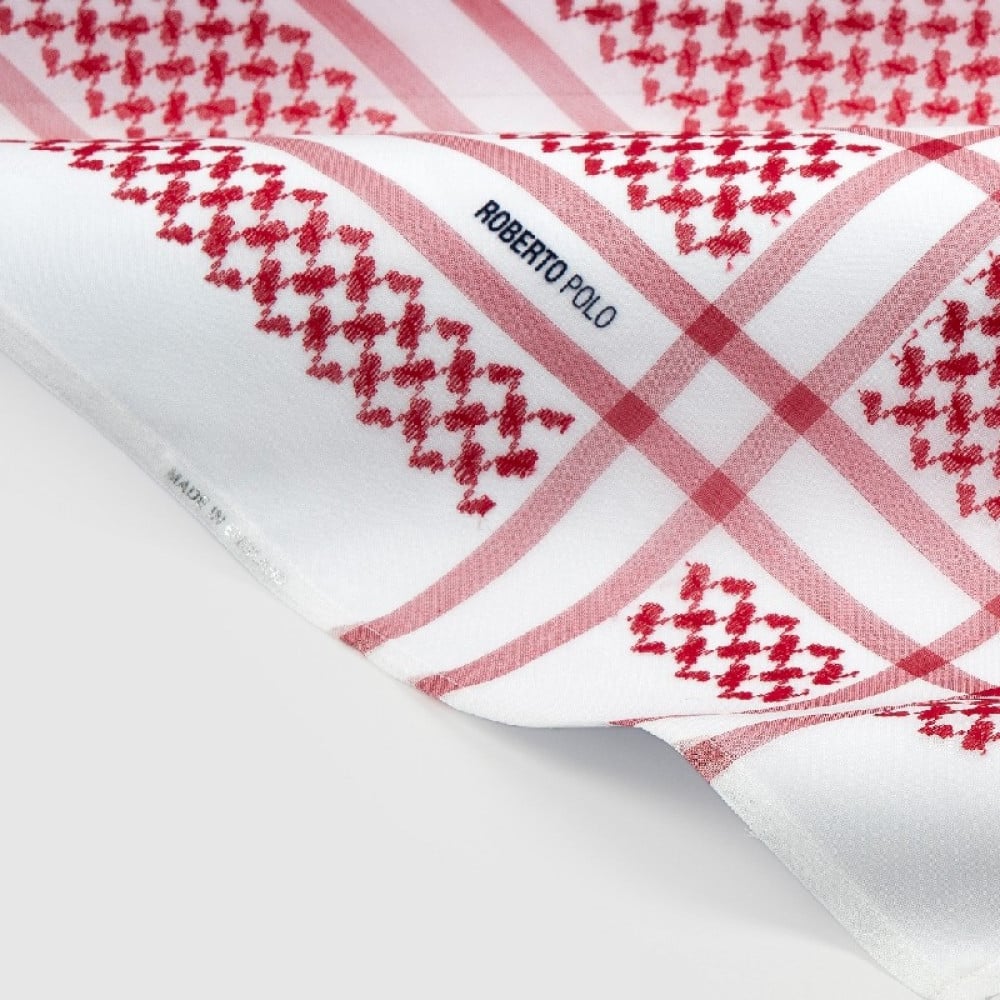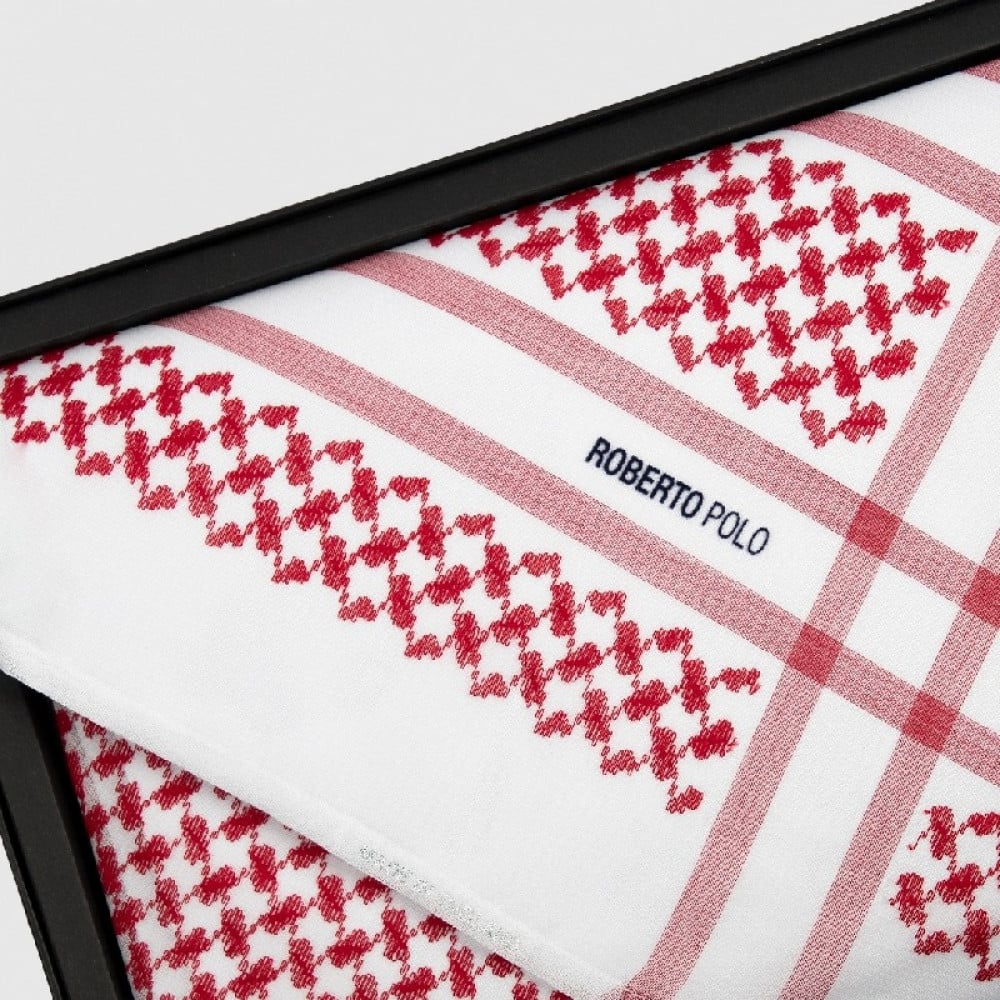 • شماغ روبرتو بولو الأحمر منتج فريد ومميز يعبر عن الأناقة والفخامة.