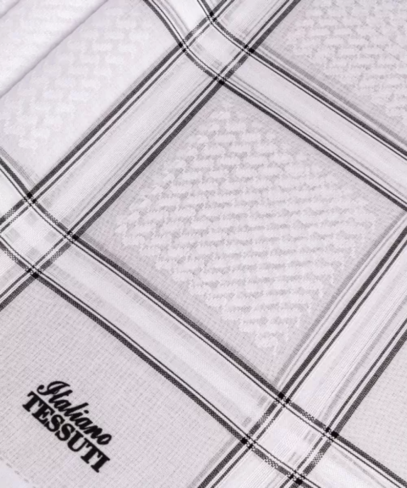 ✅اسم الماركة مطبوع بطريقة مميزه باللون الأسود بتناسق مع ألوان الشماغ .