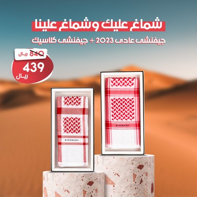 ✅يتكون العرض من شماغين راقيين من ماركة جفنشي ( شماغ جيفنشي كلاسيك , شماغ جيفنشي عادي 2022 ).